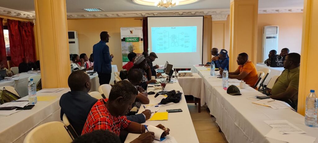 Lors de son discours d’ouverture, Ing. FORGHAB Patrick MBOMBA, Directeur Général Adjoint de l’ONACC, a mis en lumière l’aggravation des phénomènes climatiques extrêmes (inondations et glissements de terrain) qui frappent la ville de Bafoussam. Il a ensuite souligné que : «L’objectif principal de cette étude est de cartographier et d’analyser les risques climatiques, en particulier les inondations et les glissements de terrain dans la ville de Bafoussam, afin de mieux comprendre leur distribution géographique, d’anticiper leurs évolutions futures et de proposer des mesures de prévention, d’atténuation et d’adaptation visant à renforcer durablement la résilience urbaine face aux effets du changement climatique.»
