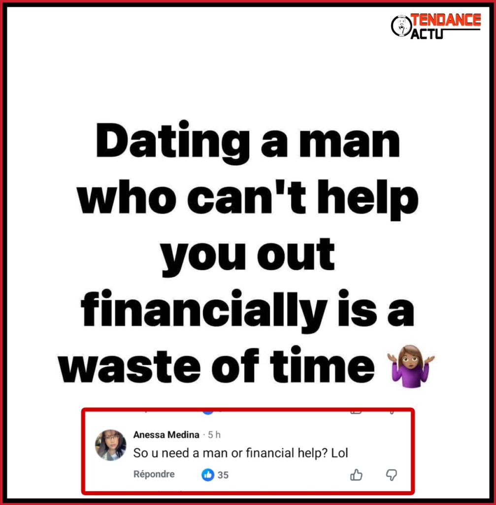 Les hommes ont exprimé leur déception en commentaire, soulignant le fait que donc l’homme millionnaire peut décider de faire d’une femme pauvre millionnaire mais le contraire relève d’un miracle. Pour ne pas dire que c’est impossible car il y a des exceptions très rares.