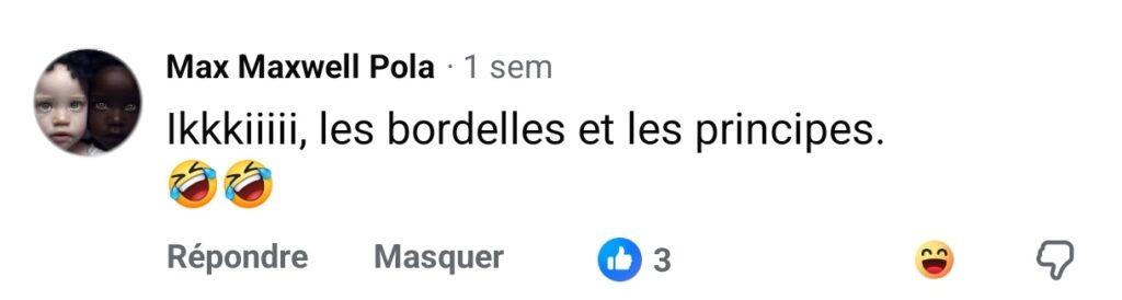 Un mouvement fictif des hommes créé en ligne (le syndicat) est même allé jusqu’à mettre le montant du taxi à maximum 2000 Frs CFA, afin de dire non à la prostitution car exiger 5 000 frs CFA, 10 000 Frs CFA et plus d’un homme après un acte sexuel est un moyen de lui dire de payer ce qu’il a consommé car le prix d’un dépôt de taxi de ville a été fixé à 350 frs CFA par une note du Ministre du Commerce en 2023. Vous voyez donc que si c’était vraiment l’argent de transport, elles allaient demander (sans exiger) juste les montants nécessaires pour se déplacer aller et retour. Ce qui ne dépasse pas généralement 2000 Frs.