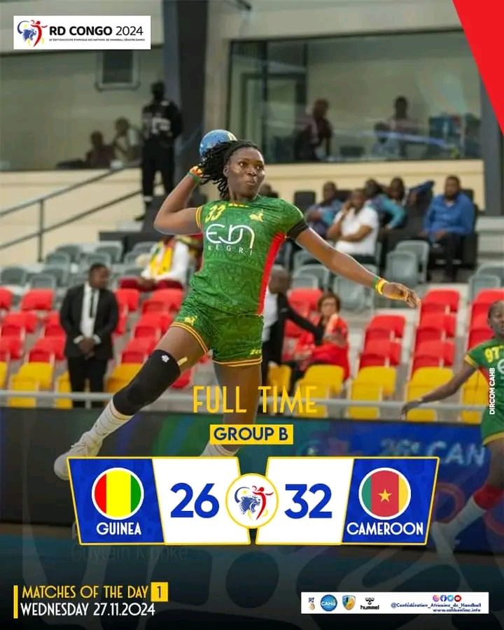 La ferveur de la CAN Seniors Dames RD Congo 2024 s’est intensifiée dès le premier jour, avec une prestation éclatante des Lionnes Indomptables du Cameroun. Opposées à une équipe de Guinée combative, les Camerounaises ont su renverser la vapeur après une première mi-temps délicate (12-15) pour finalement s’imposer sur le score de 32 à 26.
