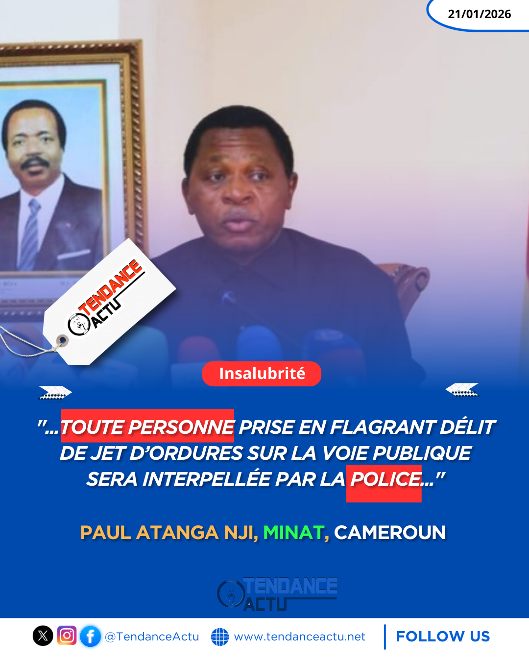 Il est important de préciser que désormais, toute personne prise en flagrant délit de jet d’ordures sur la voie publique sera interpellée par la police et répondra de ses actes. L’heure de la réaction est terminée selon le MINAT Aka “Moulinex“.