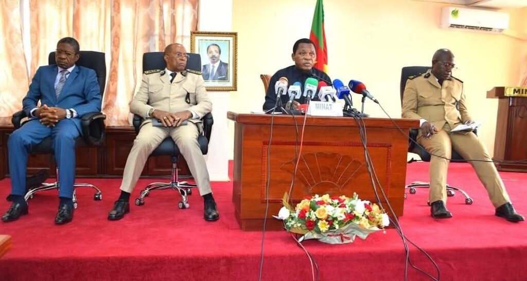 Les travaux se sont tenus dans la salle de conférence de son département ministériel, en présence du Gouverneur de la Région du Centre, du Maire de la Ville de Yaoundé, du Préfet du département du Mfoundi, des sept Sous-préfets et des sept Maires d’arrondissement de la capitale, ainsi que des responsables du Ministère de l’Habitat et du Développement Urbain (MINHDU) et des sociétés en charge de la collecte des ordures ménagères, notamment Hysacam et Thychlof.